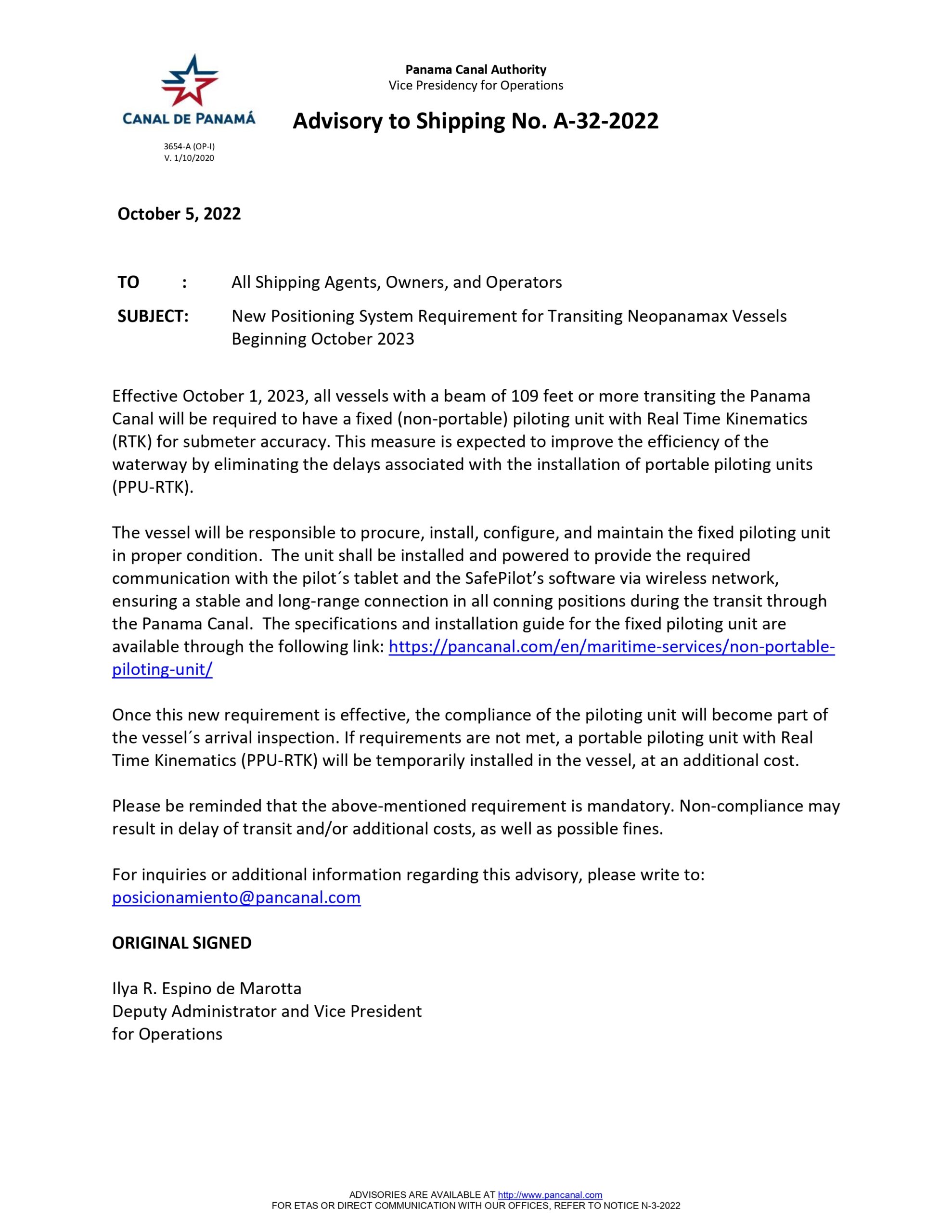 New Positioning System Requirement for Transiting Neopanamax Vessels