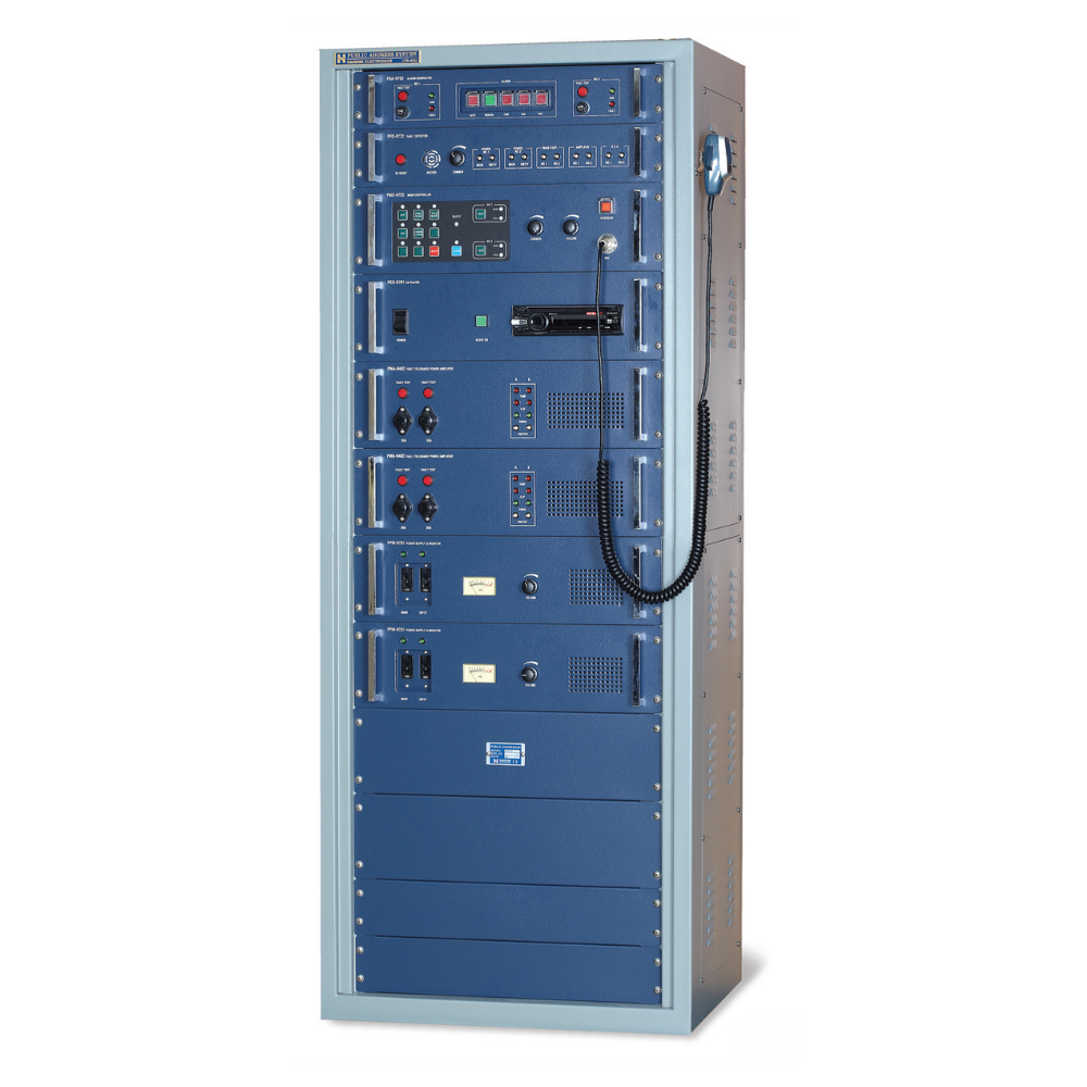 | • Single/Dual system • Single/Dual rack type • Output: 200W~2,000W • Remote controller: Standard 6ea (Extension: 36ea) • Master & Slave changeover/Two amp. run type • Alarm generator: option – General emergency alarm – Fire alarm – CO₂ smoke alarm – Gas alarm – etc. • GA muting • Announcing priority: 12 class • Auto-telephone paging call (all, group1, group2) • Automatic main/em’cy power changeover • Fault detector (system check) • Operating temperature & humidity: -5°C ~ +55°C, 95% • Frequency characteristic: 120~12000Hz within±6dB • Distortion: less than 0.5% • S/N Ratio: more than 55dB • Power source: AC110/220V, 50/60Hz & DC24V • Dimension (W x D x H mm): 585 x 450 x 1500 (single rack/800W dual system) |
