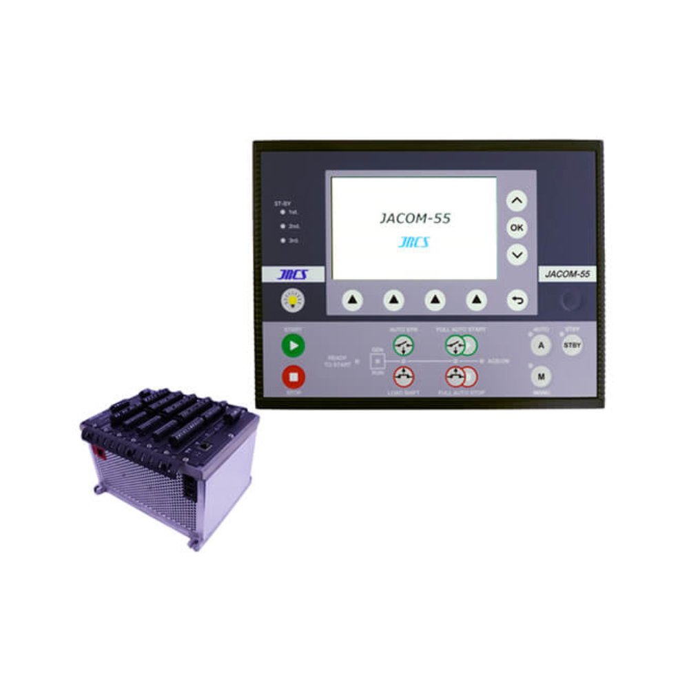 JACOM-55 is a fully distributed power management system for generators. A large 5-inch LCD (Liquid Crystal Display) is used as standard for improved visibility and operability.