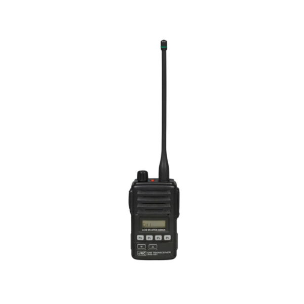The JHS-431 is a 2-watt UHF intrinsically safe transceiver designed for on-board communication during ship operations, loading/unloading, and mooring. Its intrinsically safe design meets ATEX Directive 94/9/EC, making it suitable for use on Tankers, LPG carriers, LNG carriers, and LO carriers when transporting flammable or hazardous materials