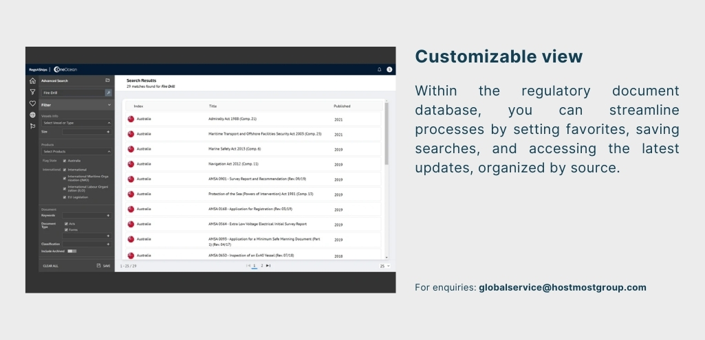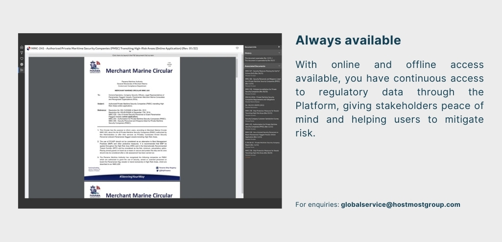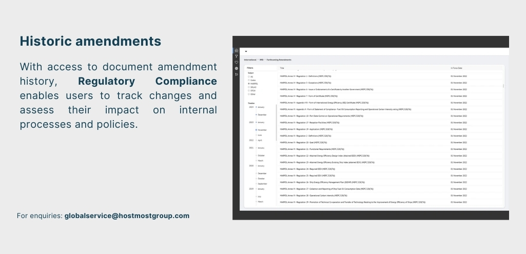 - Saves Time: Centralizing regulatory data into a single toolset removes the need for manual tracking, sourcing, and updating of documents. Hostmost helps you replace the time-consuming task of managing regulatory changes across multiple vessels.